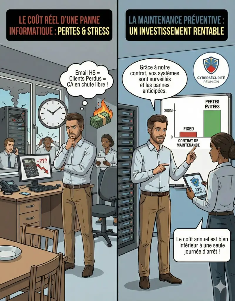 Une panne ne coûte pas que la réparation. Salaires versés à perte, CA à l’arrêt, image dégradée… Calculez le coût réel et pourquoi la maintenance est rentable.