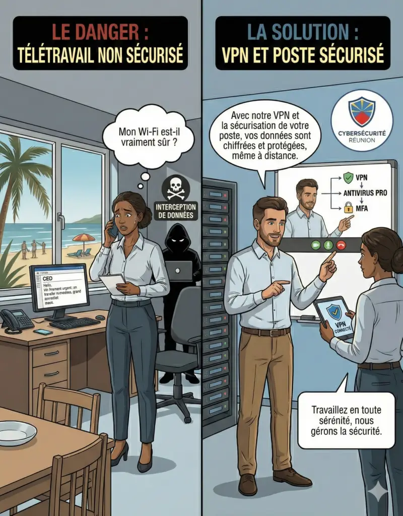 Quand vos salariés travaillent de chez eux, ils n’ont plus le pare-feu du bureau. Découvrez comment le VPN transforme un Wi-Fi familial en ligne sécurisée.