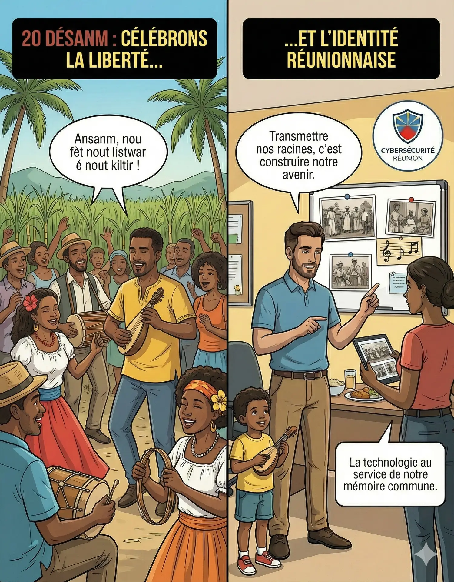 En tant qu'entreprise réunionnaise, il nous tient à cœur de marquer cette pause. Le numérique et l'innovation construisent l'avenir, mais ils doivent s'appuyer sur des racines solides. Savoir d'où l'on vient pour savoir où l'on va.
